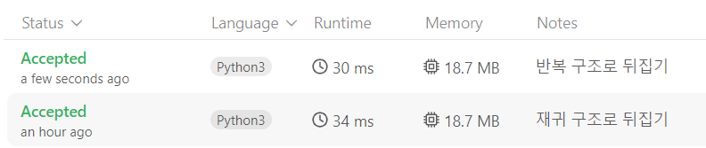 - 반복 구조로 뒤집기 (Iterative)