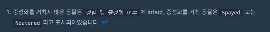 여기서 문제는 'Neutered Male' 임