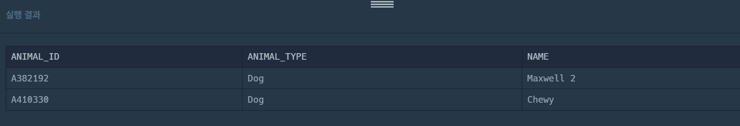 ➡️결과적으로 SEX_UPON_OUTCOME = 'Spayed Female'에만 해당하는 동물만 필터링되고, 'Neutered Male'은 조건식이 아니라 무시되거나 잘못 작동하게 됨