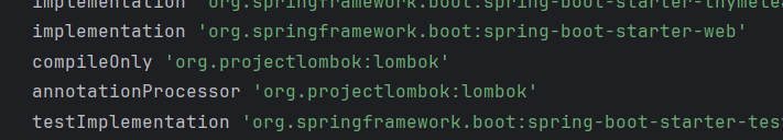그래서 build.gradle 에서 lombok 에 관한 설정을 뒤져봤지만, lombok 설정에는 문제없었다.