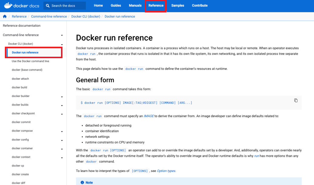 3. 공식 홈페이지의 Reference를 클릭하면 다양한 CLI 예제들을 볼 수 있다.