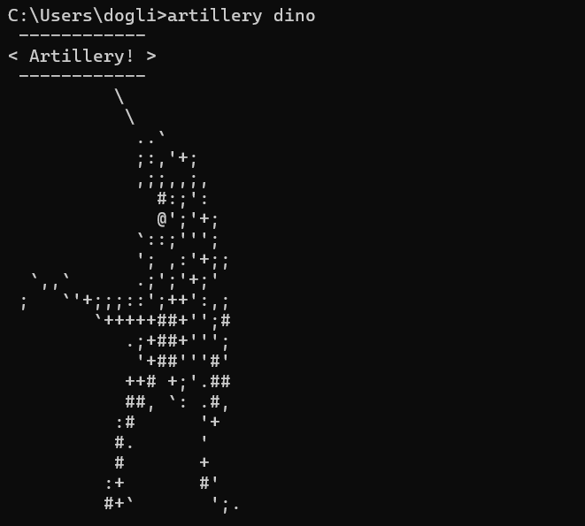 Artillery가 제대로 설치되었는지 확인할 수 있는 명령어가 있다. 이 명령을 실행하면 설치된 Artillery의 버전이 표시된다.
