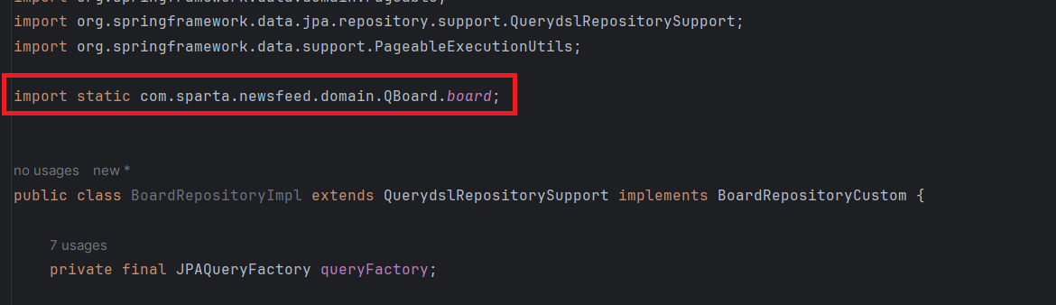 RepositoryImpl 클래스에서 Q클래스 import가 안되는 문제가 발생했다.