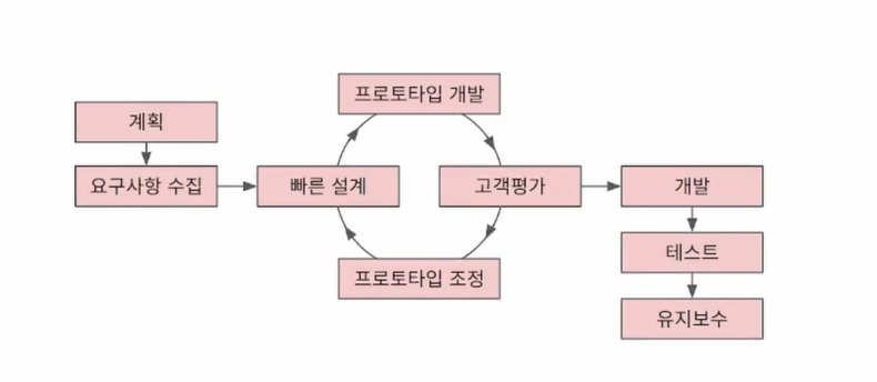 - 요구사항 분석 단계에서, 프로토타입을 만들면서 최종 결과물을 미리 예측하는 모델
