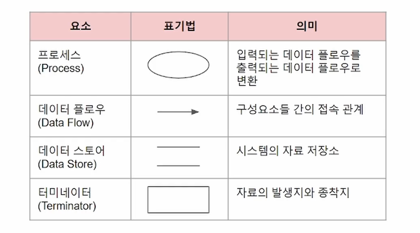 - 구조적 분석 기법에 이용되는 분석 도구로, 자료 흐름, 변환 과정, 기능을 4가지 기호로 기술함