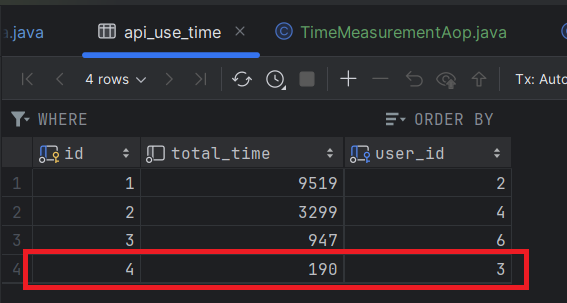 ✏️1. 회원 별 총 API 사용시간 누적 저장