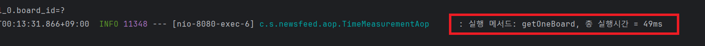 마지막으로 이 애너테이션을 시간 측정 기능이 필요한 메서드 위에 붙여주면 된다.나는 글 조회 API와 팔로우 API 실행 시간만 필요했으므로 이 두 개의 메서드에만 붙여줬다.