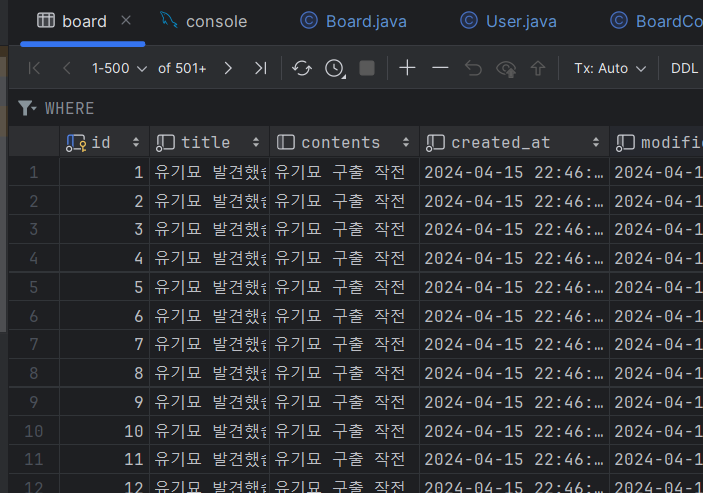 게시글 더미 데이터도 똑같은 방식으로 넣어 주자.