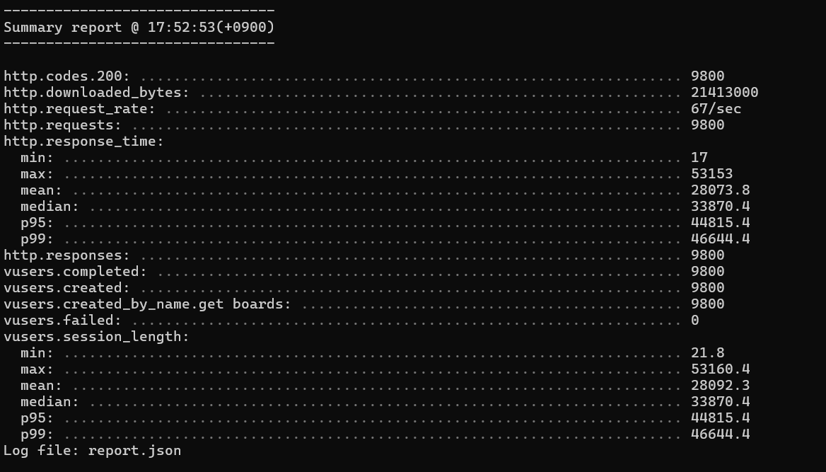 총 9800개의 요청이 실패 없이 모두 응답 성공했다.