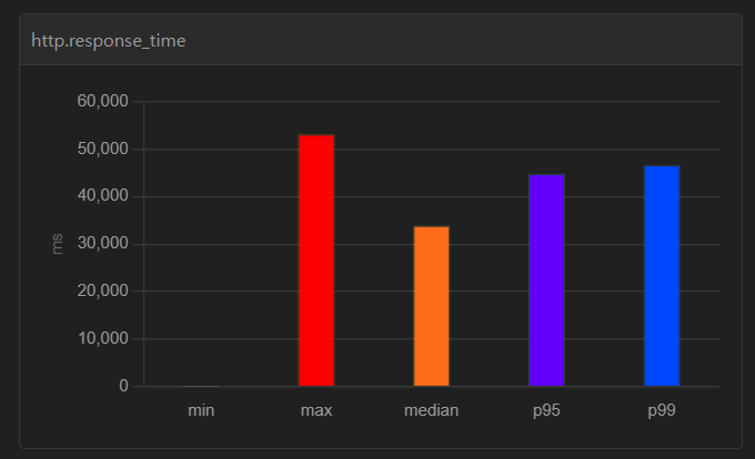http.response_time에서 median - p95 - p99 간의 차이를 유의미하게 봐야 하는데, 중앙값과 p95 값에 큰 격차가 없어야 성능이 좋다고 볼 수 있다.