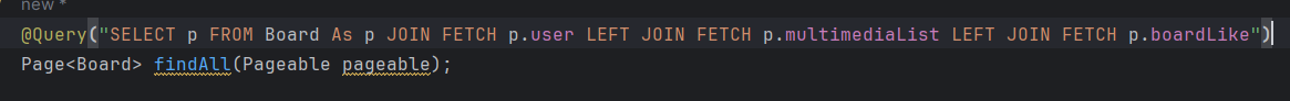 - multimedia나 boardlike 둘 중 하나만 fetch join하고 나머지는 따로 조회하는 쿼리문 남겨두기