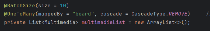게시글 엔티티에서는 해당하는 필드 위에 동일한 BatchSize 애너테이션을 달아주면 된다.
