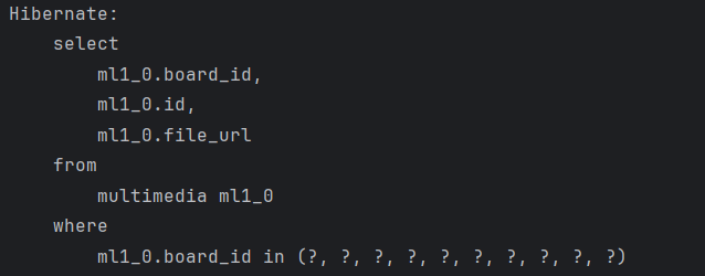 이렇게 하면 select 문의 where절에서 하나씩 조건을 조회하는 것이 아닌, in 을 이용해서 한꺼번에 조회할 수 있게 되어 조회 쿼리를 실행하는 절대적인 시간을 단축할 수 있다.