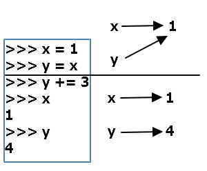 x가 1을 가리키고 y가 x를 가리킨다고 했을 때, y에 3을 더하면서 y의 값을 변경하는 순간 y는 4를, x는 1을 가리키게 된다.