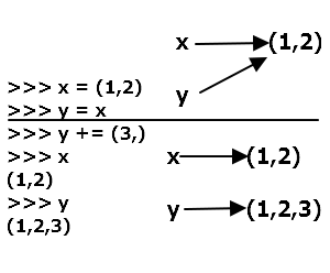 튜플 y에 3을 넣어주더라도 x 튜플에는 영향이 없는 것을 볼 수 있다.