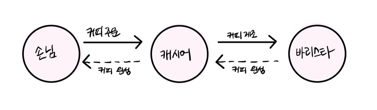 - 우리가 카페에 가서 커피를 마실 수 있는 이유는, 커피를 주문하는 손님/주문 받는 캐시어/제조하는 바리스타 라는 역할이 존재하기 때문이다.