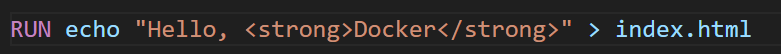 echo "Hello, <strong>Docker</strong>" > index.html