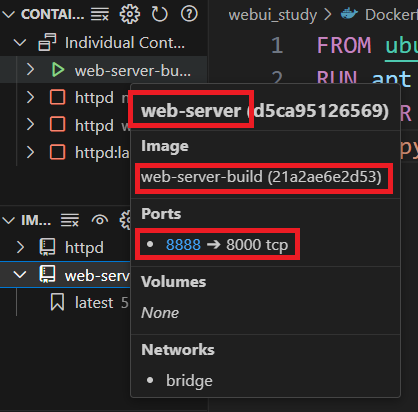 ++ 해당 UI는 VSC 에서 Docker 관련 확장 프로그램을 설치하면 볼 수 있다. (Dockerfile 가독성도 좋게 해주니 설치하는 것을 권장한다)