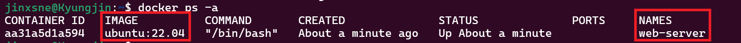 Ubuntu 22.04 라는 이미지를 web-server 라는 이름을 가지도록 한 명령어를 실행시켜주었다.