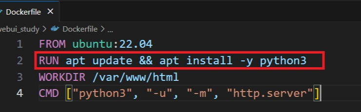 이렇게 작성해도 되는데, Dockerfile의 특성 상 이런 명령어가 실행될 때 마다 '레이어'가 생성되기 때문에 이렇게 작성하는 것은 효율적이지 않아서 && 기호를 통해 하나로 연결해 쓰는걸 권고한다. 관련 포스팅 링크