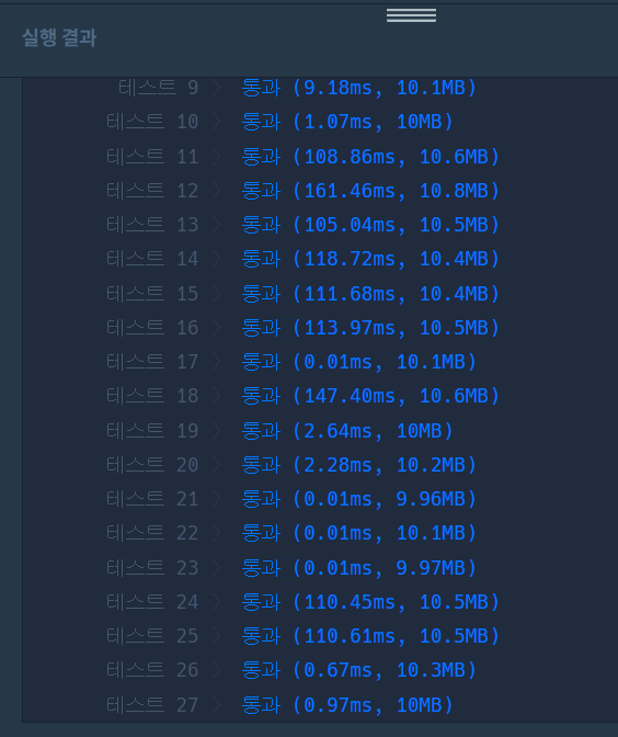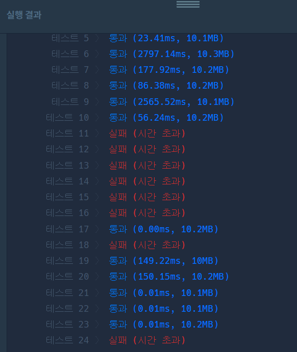 테스트는 무난히 통과했으나 코드를 제출해보니 우수수 시간초과가 났다 ㅠ