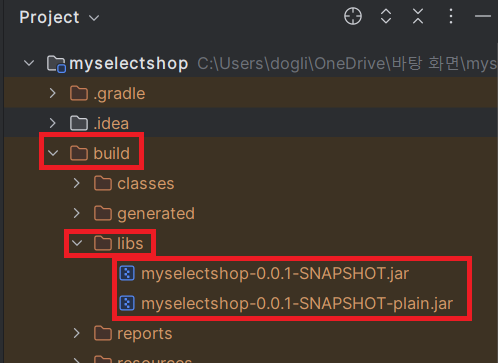 좌측 build 폴더 > libs 아래에 .jar 확장자로 끝나는 파일이 생성됐다면 빌드가 성공적으로 된 것이다! 🎇