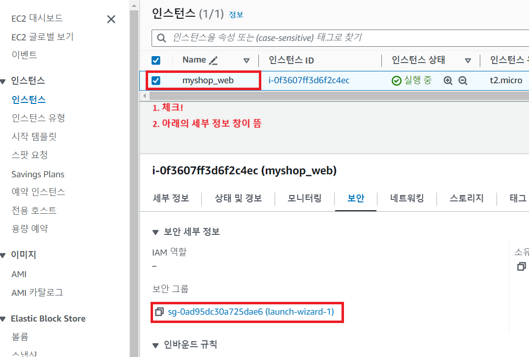 1-6. 체크 된 부분들을 확인해주고 '인스턴스 시작' 클릭!