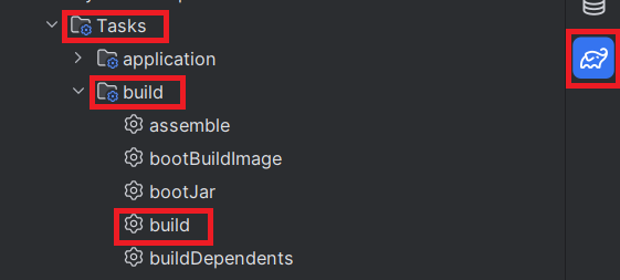 인텔리제이로 이동해서 우측 탭의 Gradle을 선택 후, Tasks > build > build 를 더블 클릭한다.